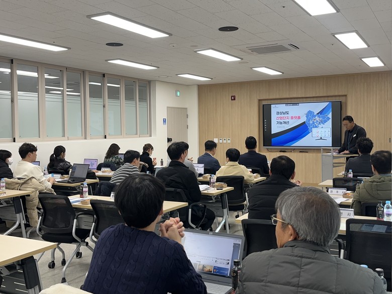 이번 보고회에는 경남도‧시군 산업단지 담당자, 수행기관 등 관계자 40여 명이 참석한 가운데 플랫폼 시연, 신규 기능 소개, 활용 교육, 질의응답, 2025년 이후 개발 방향 논의가 진행됐다.
