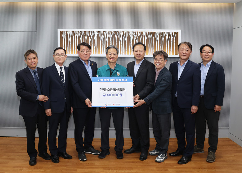지난 3월 발생한 경북 지역 대형 산불로 수십 농가가 농경지와 농업시설에 큰 피해를 입었으며, 조속한 영농 복귀와 생계 안정이 절실한 상황이다. 이에 한국탄소중립농업포럼은 농업·농촌의 탄소중립 실천과 지속가능한 발전을 목표로 추진 중인 민간 포럼 활동의 일환으로, 산불 피해 농가들의 생계 회복과 농업 기반 복구를 지원하기 위해 이번 기탁을 추진했다.