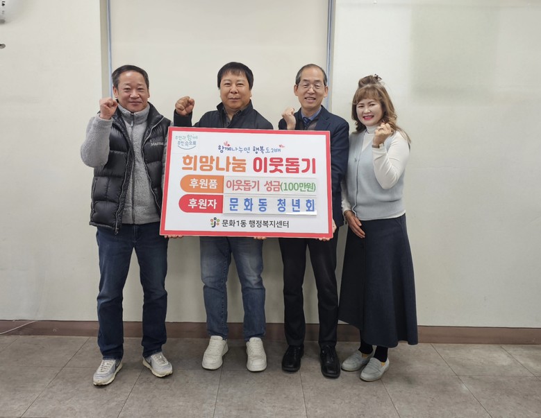 유영단 동장은 “매년 변함없이 청소년들을 위해 따뜻한 나눔을 실천해 주시는 문화동청년회에 감사드린다”라며, “기탁된 성금은 저소득가정 학생들이 배움의 뜻을 펼칠 수 있도록 소중히 전달하겠다”라고 답했다.