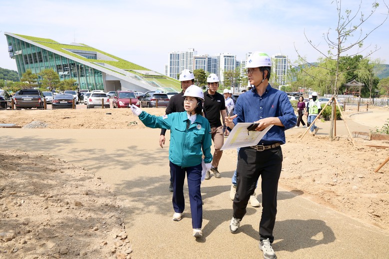 의장은 첫 일정으로 천안삼거리공원 재조성 현장을 찾아 공사 진행 상황을 점검하고, 계획보다 크게 늦어지고 있는 사업 속도에 대해 강하게 질타했다.