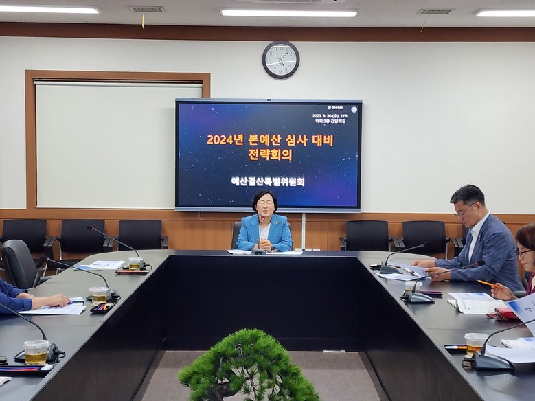 [대구 세계타임즈=한성국 기자] 대구시의회 제9대 2기 예산결산특별위원회(위원장 이재숙)는 8월 30일(수) 오후 5시 예산심사 방향 및 심사 전략 논의 등 하반기 정리추경예산과 2024년도 본예산 심사에 대비한 전략회의를 개최했다.