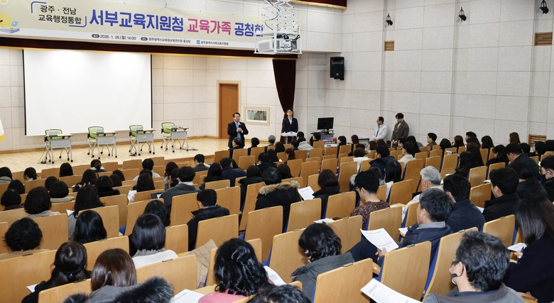 [광주 세계타임즈=손권일 기자] 광주시교육청(교육감 이정선)은 26일 광주시교육청교육연수원 중강당에서 서부권 교직원, 학부모, 시민 등을 대상으로 ‘광주·전남 교육행정통합’ 추진 현황 공유 및 의견 청취를 위한 공청회를 개최했다.