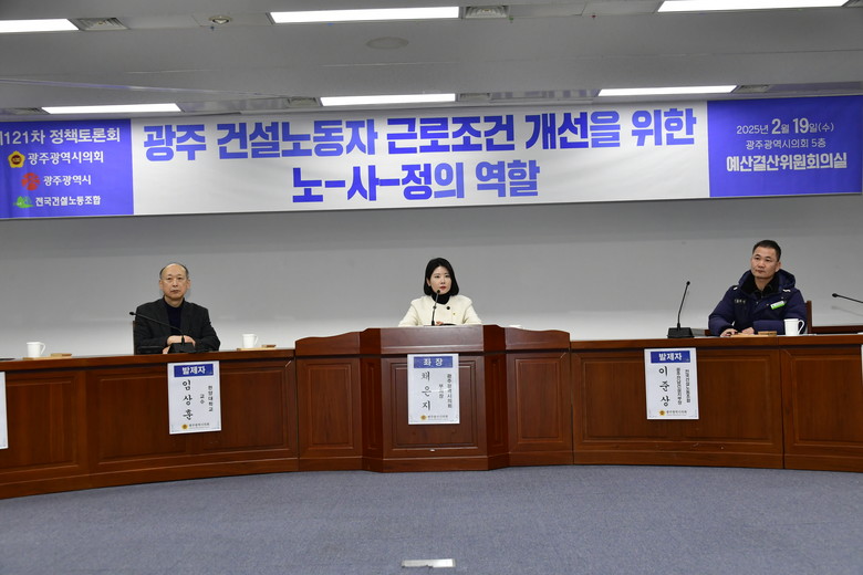 광주시의회 채은지 의원은 19일 오후 2시 광주시의회 예산결산특별위원회 회의실에서 ‘광주 건설노동자 근로조건 개선을 위한 노-사-정의 역할’을 주제로 정책토론회를 개최했다.