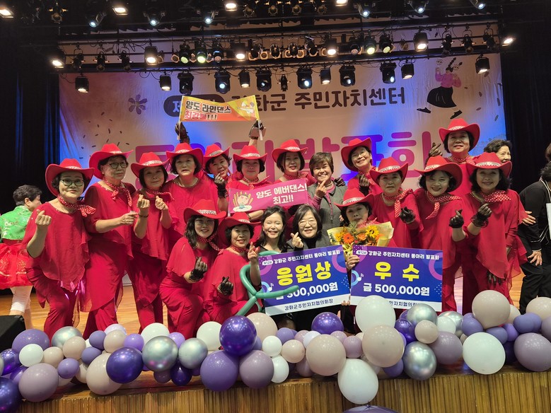 [강화군 세계타임즈=심하린 기자] 강화군 양도면(면장 조현미)은 지난 20일 강화문예회관에서 열린 제12회 강화군 주민자치센터 동아리 발표회에서 양도면 라인댄스 동아리가 ‘우수상’을 수상했다고 밝혔다.