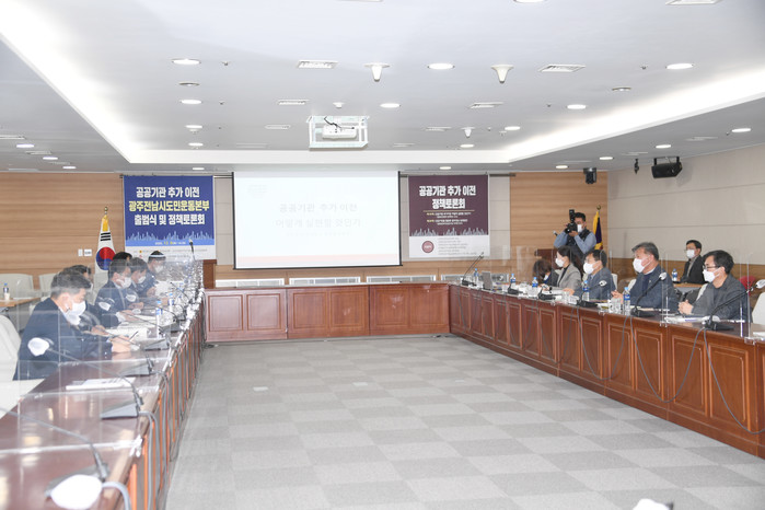 [광주=세계타임즈 손권일 기자] 광주광역시의회(의장 김용집)는 8일 오후 시의회 4층 대회의실에서 김광란 시의원이 토론자로 참석한 가운데 '공공기관 추가이전 방법과 공공기관 활용한 광주.전남 상생방안'을 주제로 정책토론회를 개최했다