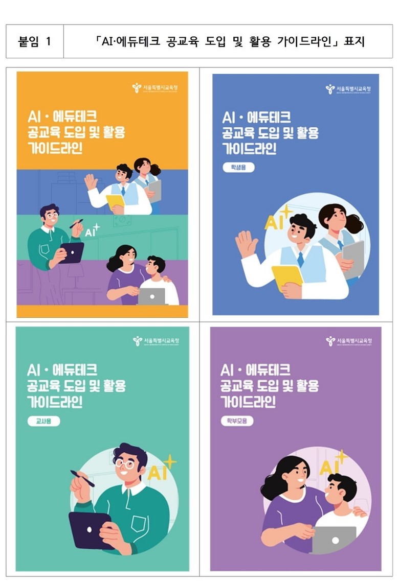 [서울 세계타임즈=이장성 기자] 서울특별시교육청(교육감 정근식)은 학생들이 AI에 종속되지 않고 스스로 배움을 이끄는 주체로 성장할 수 있도록 「AI·에듀테크 공교육 도입 및 활용 가이드라인」을 개발하여 일선 학교에 배부한다.