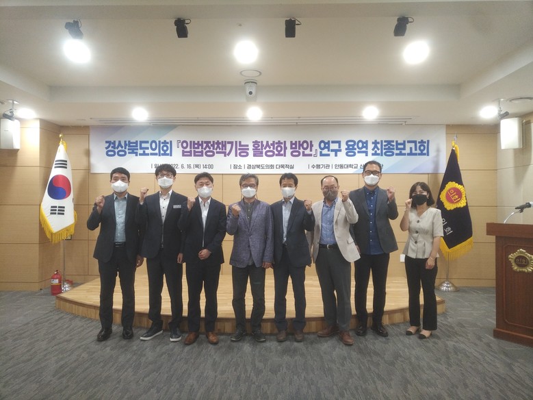 이번 연구용역은 안동대학교 산학협력단(책임연구원 김태형)에서 수행했으며, 국회 및 17개 시·도의 입법정책기구의 업무 및 기능, 조직, 인력 등에 대해 비교 분석 후 경북도의회 입법정책기능을 진단하고 입법정책 전문성 제고방안을 제시했다.