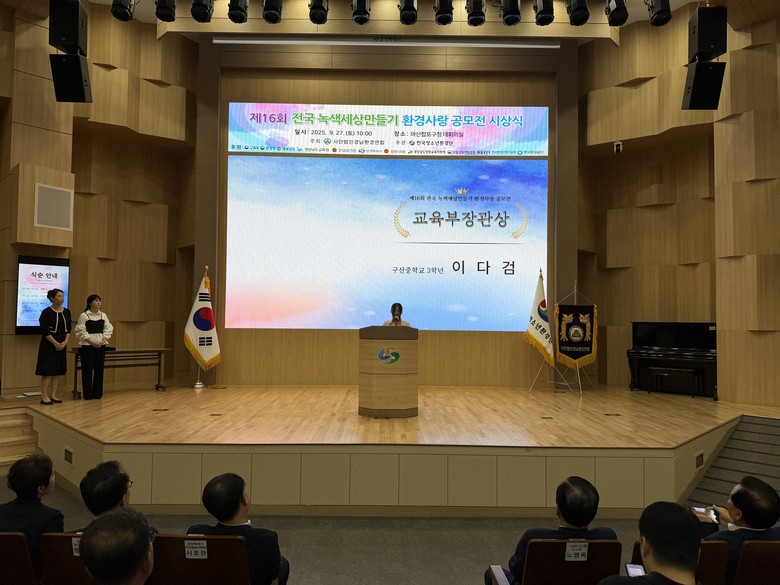 [세계타임즈]최성룡기자 = 한국청소년환경단(총재 남성용)은 9월 27일(토) 마산합포구청 대회의실에서 ‘제16회 전국 녹색세상만들기 환경사랑 공모전 시상식’을 개최했다.