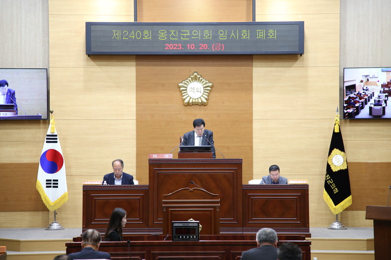 옹진군의회 이의명 의장은 “지난 열흘간 활발한 의정활동을 펼쳐준 동료의원과 의회운영에 적극 협조해준 공직자 여러분들게 깊은 감사를 드린다’고 밝혔다. 또한 ‘건조한 계절인만큼 화재 예방에 만전을 기하여 줄 것’을 집행부에 당부하며 발언을 마무리했다.