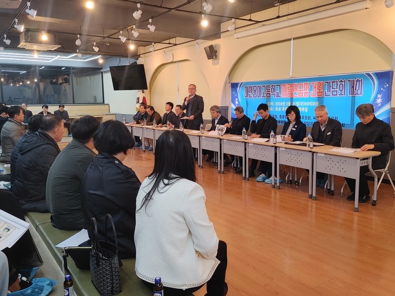 경남도의회 교육위원회 정규헌(국민의힘·창원9) 의원은 21일 마산용마고등학교에서 씨름부 학생 및 학부모, 총동창회 등 관계자들과 ‘마산용마고등학교 씨름연습장 건립 간담회’를 가졌다. 이날 간담회는 화장실과 샤워실 등 훈련에 필요한 기본적인 시설조차 갖춰지지 않은 용마고 씨름연습장을 새롭게 건립하는 문제와 더불어 시급하개 개선해야 할 부분에 대한 논의를 위해 마련됐다.