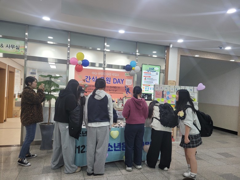 이날 수능을 준비하는 학생들에게 친구와 후배들이 격려 메시지를 작성하고 간식을 만들어 전달하는 시간을 가지며 또래 간의 유대감을 형성하고 건강한 교우 관계를 다졌다.