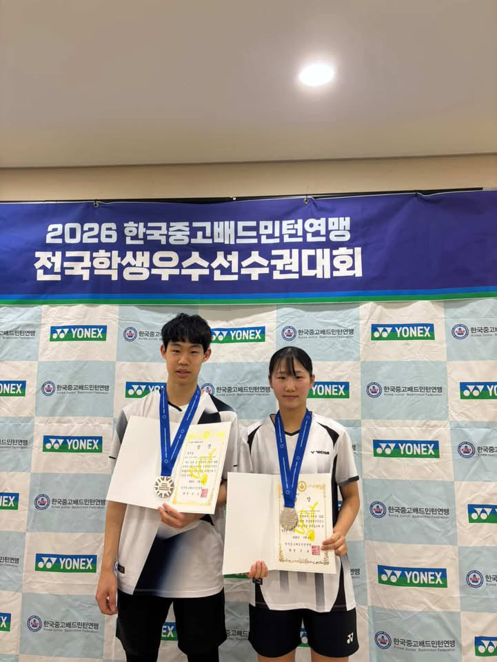[오산시 세계타임즈=송민수 기자] 오산시(시장 이권재) 사단법인 오산스포츠클럽 소속 배드민턴 선수들이 ‘2026 한국중·고배드민턴연맹 전국학생우수선수권대회’에서 혼합복식 고등부 준우승을 차지하며 전국 무대에서 우수한 기량을 입증했다.