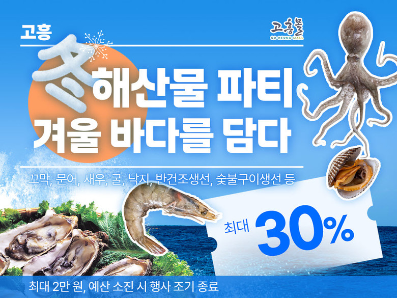 이번 기획전은 겨울철 맛과 영양이 절정에 달하는 고흥산 수산물을 합리적인 가격에 제공하기 위해 마련됐다. 기획전 기간 꼬막, 문어, 새우, 굴, 낙지를 비롯해 반건조 생선과 숯불구이 생선 등 다양한 겨울 제철 수산물을 최대 30% 할인된 가격으로 만나볼 수 있다.