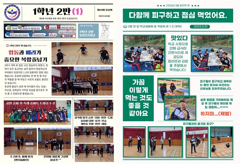 담임교사와 학급문집 편집과 원고 작성 등을 함께했던 1학년 2반 정대웅, 장순민 학생은 "처음에는 글을 쓰고 활동 후 소감문을 작성하는 과정과 행사 사진 남기기 등 쓰면서 힘들고 귀찮았지만, 막상 학급문집을 받아보니 너무 기쁘고 뿌듯함을 느꼈다”고 말했다.