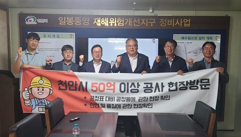 또한 공사 진행 시 치명적 원인으로 공사에 차질을 일으킨 업체에 대한 페널티 부과해 낙찰업체의 책임과 의무를 향상시켜야 함도 발언하며 이번 현장 방문을 시작으로 천안시 50억 이상의 대형공사 중 부진공정 등의 문제가 있다고 판단되는 타공사 현장 방문에 대한 계획을 밝히고 일정을 마무리 했다.