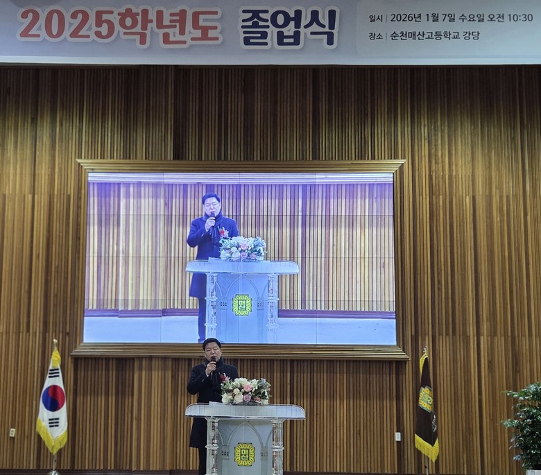 [전남 세계타임즈=우덕현 기자] 김정희 전남도의회 교육위원장은 1월 7일(수), 순천매산고등학교에서 열린 제75회 졸업식에 참석해 졸업생들을 축하하고, 새로운 출발을 응원하는 메시지를 전했다.