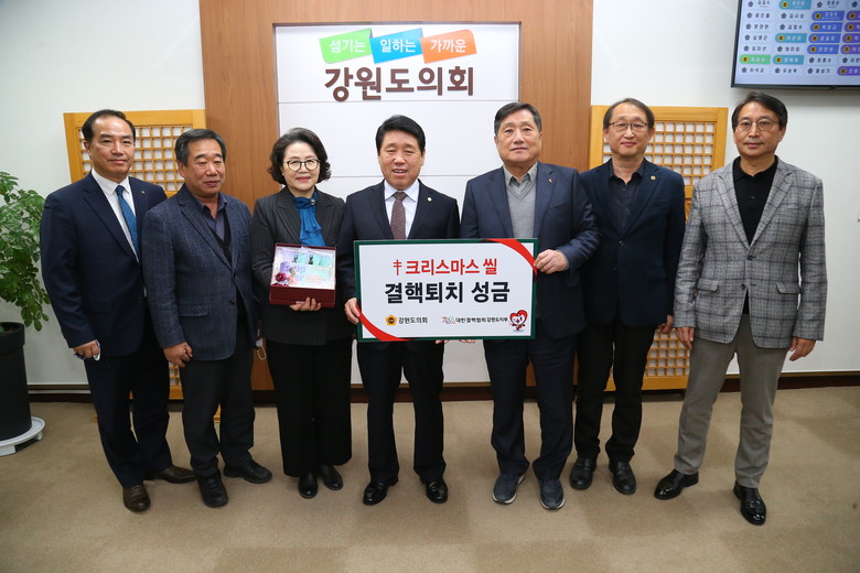권혁열 강원도의회의장은 강원도의회를 대표하여, 대한결핵협회 강원도지부 황철 회장에게 2022년도 크리스마스 씰을 증정받고, 결핵 환자 퇴치를 위한 성금(2백만 원)을 전달했다.