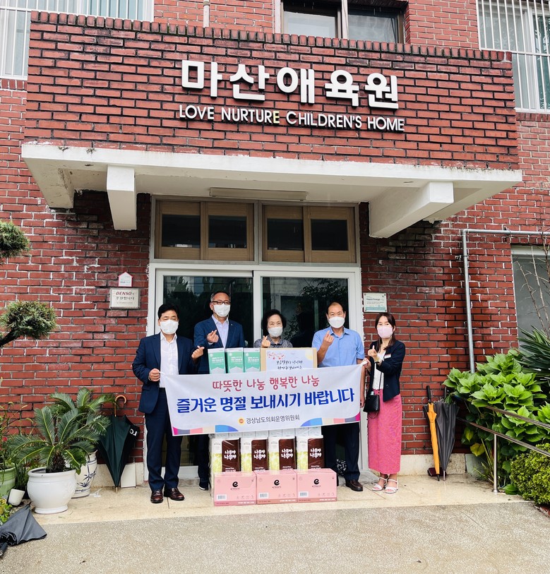 [경남 세계타임즈=최성룡 기자] 경남도의회 의회운영위원회(위원장 신종철, 산청)는 추석을 맞아 9월 5일 사회복지시설 2개소를 방문하고 위문품을 전달했다고 6일 밝혔다.