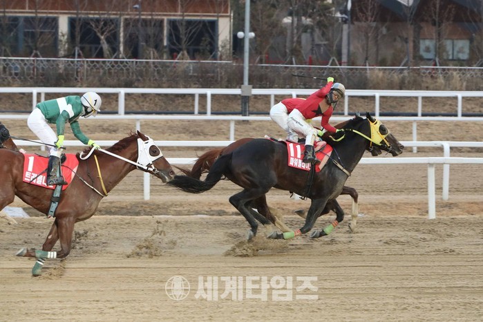 [세계타임즈 박채원기자]파워블레이드(4세, 수, 한국, R122)’가 ‘그랑프리(GⅠ)까지 접수했다. 10일(일) 한국마사회(회장 이양호) 렛츠런파크 서울에서 열린 ‘그랑프리(GⅠ, 제9경주, 2300m, 3세 이상, 혼OPEN)에서 강력한 경쟁자들을 누르며 우승을 거머쥐었다. 라이벌 ’트리플나인(5세, 수, 한국, R123)‘을 상대로 장거리 대상경주에서 거둔 첫 승리로, 이제 더 이상의 적수가 없음을 알렸다. 경주기록은 2분 24초 0.올해로 36회를 맞이하는 ‘그랑프리(GⅠ)’는 한국경마 한 해를 마무리하는 최고의 이벤트로 어김없이 스타 경주마들이 대거 출전했다.