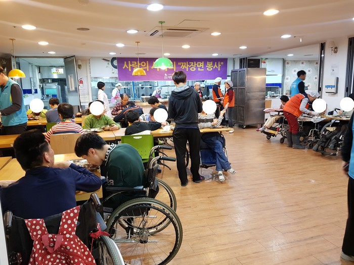 짜장면 봉사를 총괄한 정한철(정채움 대표)회원은 “중증장애 아이들이 짜장면을 맛있게 먹는 모습에서 행복과 보람을 느낀다.“고 말했다.