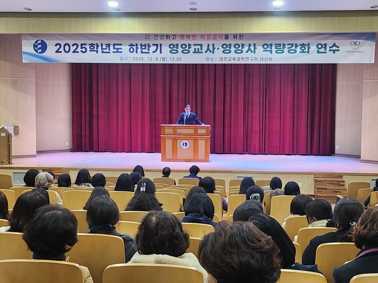 [대전 세계타임즈=이채봉 기자] 대전시교육청은 12월 8일 대전교육과학연구원에서 관내 초·중·고·특수·각종학교의 영양교사와 영양사 350여 명을 대상으로‘2025학년도 하반기 역량강화 연수’를 실시했다고 밝혔다.