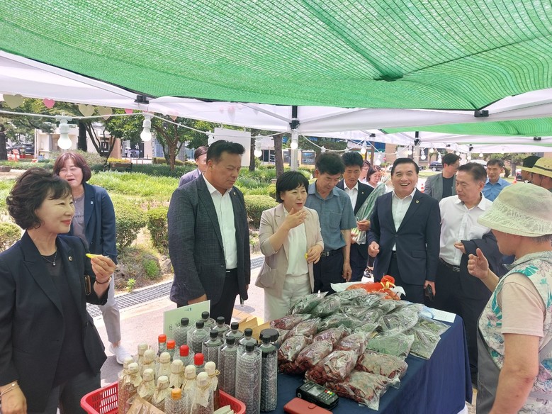 [충북 세계타임즈=이현진 기자] 충북도의회 산업경제위원회(위원장 박경숙)는 제417회 정례회 기간 중인 14일 도청 잔디광장에서 열리고 있는 우수 농특산물 직거래장터 ‘가치사유온칩 마켓’의 진행 상황을 살펴보고 참여 농가 및 단체를 격려했다.