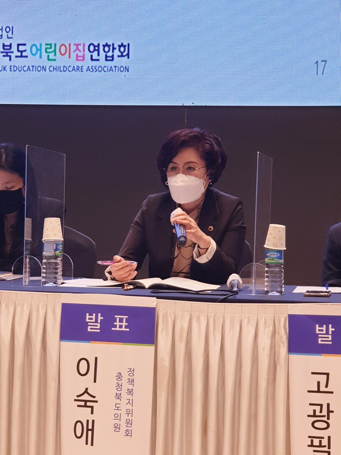 이숙애 의원은 “보육 불균형 및 격차 해소를 위해 첫째로 유보통합, 둘째로 적정한 처우개선과 전문성 강화를 통한 종사자 신뢰회복이 필요하다.”라며 “정책들은 정부가 해결해야 할 일들이 많으나 충북 차원에서 충북형보육정책을 시도해 볼 필요도 있다.”고 말했다.