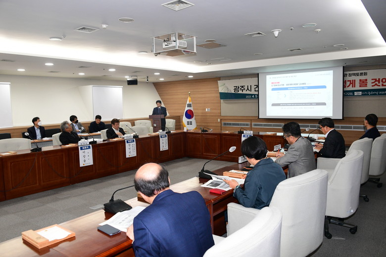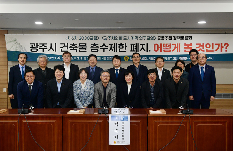 광주시의회는 4월 5일 오후 3시, 시의회 4층 대회의실에서 박수기 시의원을 좌장으로 ‘건축물 층수제한 폐지, 어떻게 볼 것인가’를 주제로 각계 전문가와 시민들의 의견을 수렴하는 정책토론회를 열었다.