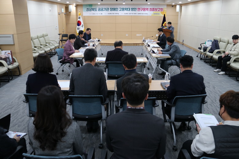 [경북 세계타임즈=한윤석 기자] 경북도의회 「경상북도 공공기관 장애인 고용 확대 방안 연구회」(대표 박선하 의원)는 11일(월) 도의회 다목적실에서 연구회 소속 의원을 비롯한 류규열 한국장애인고용공단 경북지사장과 경북도청 및 경북교육청의 인사 담당 공무원이 참석한 가운데 “경상북도 공공기관 장애인 고용 확대 방안 연구 용역” 최종보고회를 개최했다.