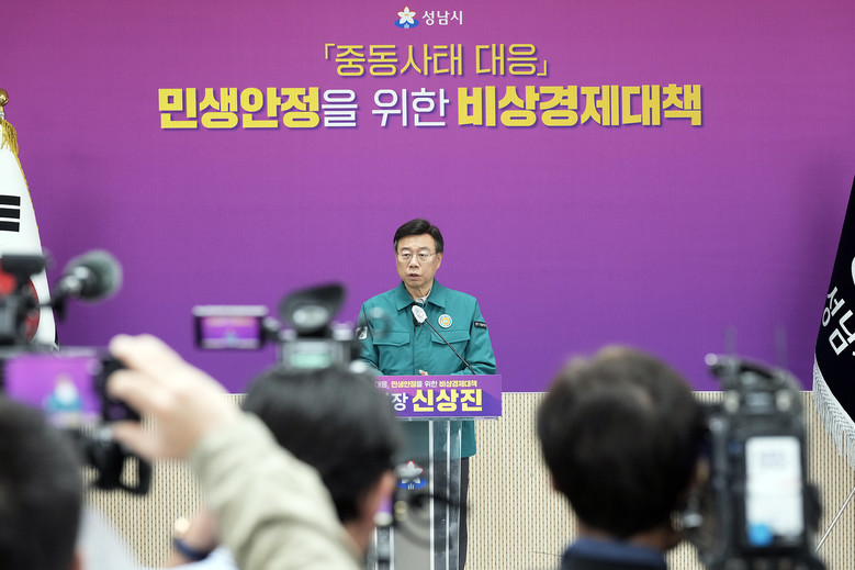 신상진 성남시장은 이날 오전 11시 시청 모란관에서 중동사태 대응 민생안정을 위한 비상경제 대책 기자회견을 열고 “중동 사태로 인한 서민 경제 부담을 완화하고, 지방정부가 앞장서 지원에 나설 수 있도록 중앙정부가 역할을 다해주기를 바란다”며 국가 재난 선포 필요성을 강조했다.