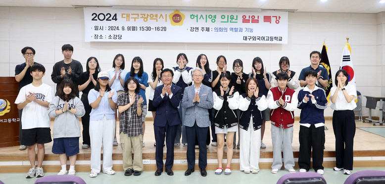 허시영 의원은 “건설교통위원장으로서 대구경북신공항 건설 등 세계로 도약하는 대구에서 청소년들이 기량을 마음껏 발휘할 수 있는 시대와 환경을 구현하기 위해 최선을 다하겠다”며, “인재 요람의 산실인 대구외고의 학생들이 대구의 미래를 이끌어 갈 글로벌 리더로 성장해 줄 것”을 당부하면서 강의를 마무리했다.