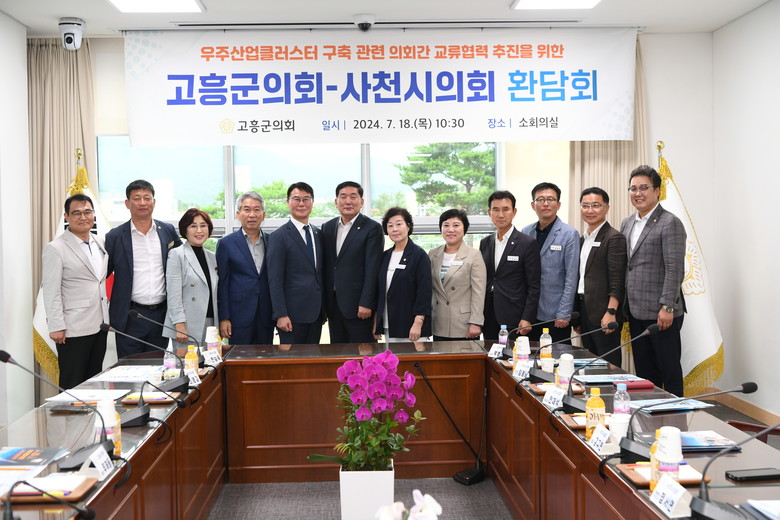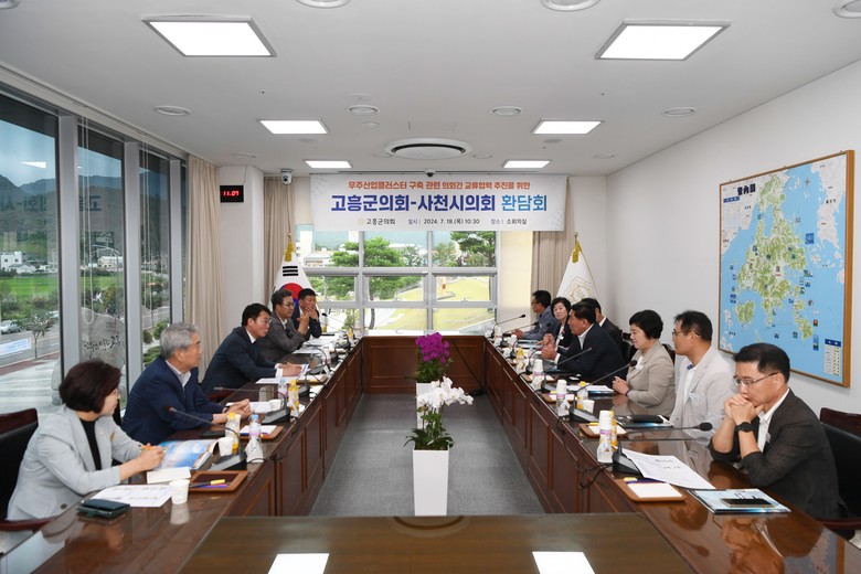 [고흥군 세계타임즈=우덕현 기자] 고흥군의회(의장 류제동)는 지난 18일 군의회 소회의실에서 사천시의회 방문단 일행과 함께 우주산업 클러스터 구축 및 우주산업 육성 교류 협력 방안에 대해 논의하는 시간을 가졌다.