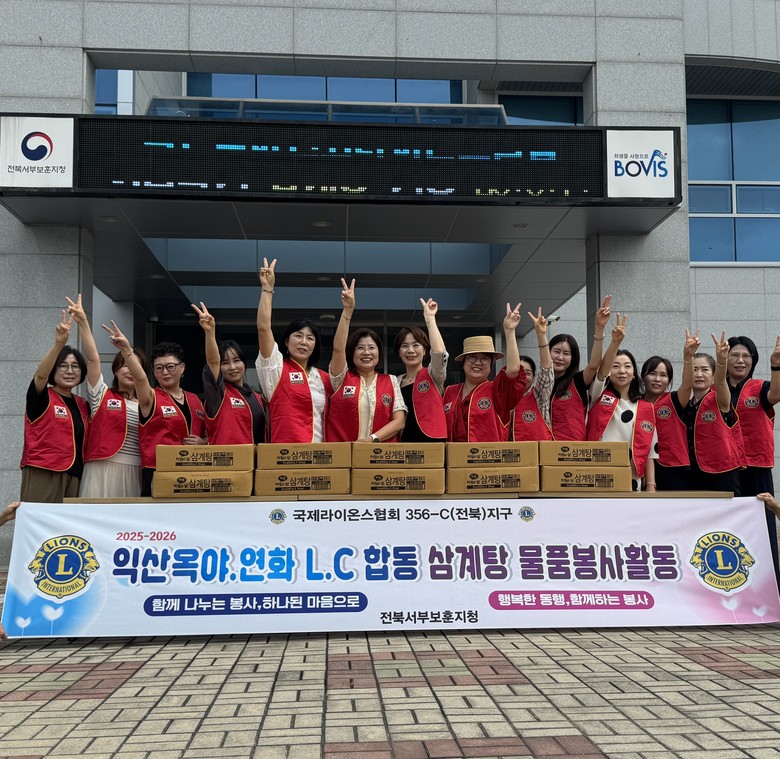 익산연화라이온스클럽(회장 윤지원)과 익산옥야라이온스클럽(회장 김현중)은 지난 7일 전북서부보훈지청을 찾아 삼계탕 100인분(약 120만 원 상당)을 전달했다.
