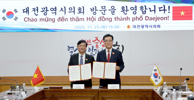 [대전 세계타임즈=이채봉 기자] 대전시의회(의장 조원휘)는 25일, 베트남 호치민시 인민의회 대표단을 공식 접견하고, 양 도시 의회 간 교류의향서를 체결하며 상호 협력 기반을 강화했다고 밝혔다.