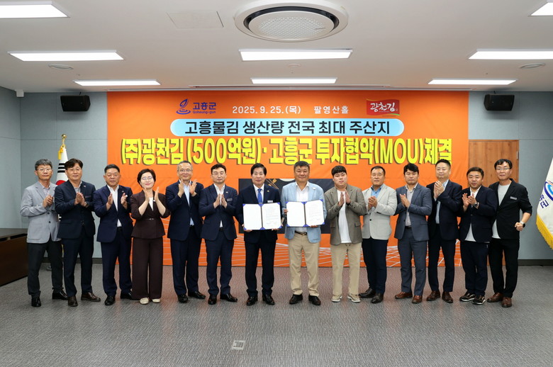 ㈜광천김은 2024년 기준 매출액 3,500억 원을 기록한 국내 김 산업의 앵커기업으로, 전 세계 50여 개국에 수출하는 유통망을 보유하고 있다. 이번 신규 투자를 통해 고흥군은 김 세계화와 맞물린 수출 전략 전초기지로 자리매김하며, 시너지 효과를 극대화할 것으로 기대된다.