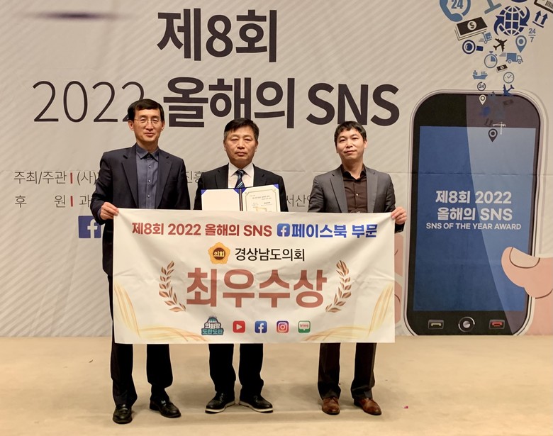 [경남 세계타임즈=최성룡 기자] 경상남도의회가 21일 ‘제8회 2022 올해의 SNS’에서 올해의 페이스북 부문 최우수상을 수상했다.