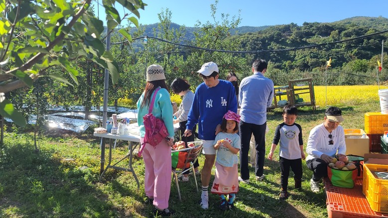 현장에 왔던 체험객들은 1~2박스 가져가고 때로는 택배로 친인척이나 친구들에게 선물로 보내기도 한다. 부득이 사과 따기 체험할 수 없는 경우에는 전화나 인터넷으로도 주문도 할 수 있다.