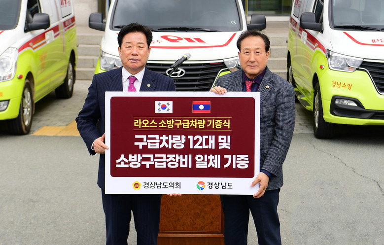 [경남 세계타임즈=최성룡 기자] 경남도의회(의장 김진부)가 지난 23일, 라오스*에 소방 특수구급차량 12대와 특수방화복 60착 등 소방용품을 기증한다고 밝혔다. 이 중 경남도의회와 우호교류협약 단체인 비엔티엔주에 10대, 인근 보께오주에 2대를 보내게 된다.