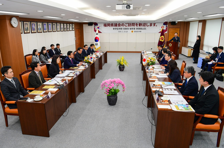 김진부 의장은 환영사를 통해 “후쿠오카현은 지리적으로 가깝고 같은 바다를 연접하고 있어 정서적으로 두 지역간 교류를 위한 매우 좋은 조건을 가지고 있다”며 “양 의회가 친선을 더욱 돈독히 해서 경제적·문화적 교류도 확대하는 계기가 되기를 희망한다”고 말했다.