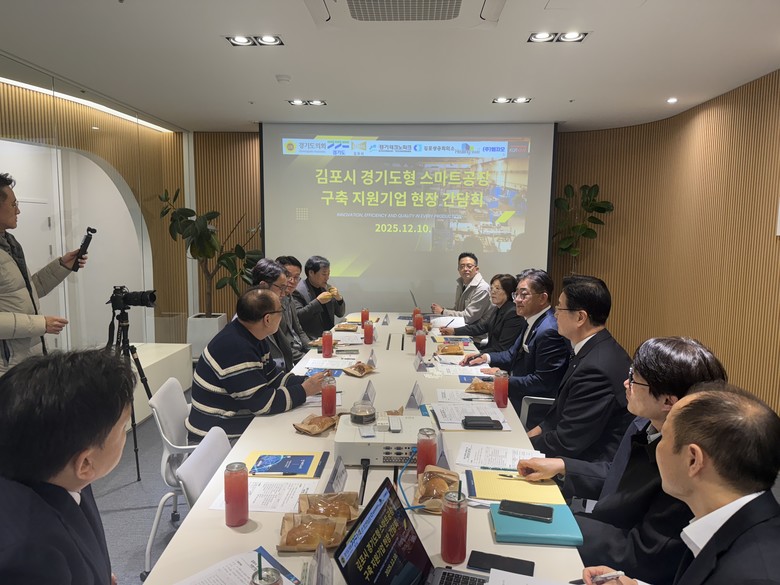 이번 현장회의에는 지원기업 ㈜폰트리와 공급기업 ㈜나이스솔루션을 비롯해 ㈜엠지오, ㈜코반케미칼 등 김포 지역 제조기업 관계자들이 참석했으며, 김포상공회의소와 김포시도 자리해 구축 사례와 애로사항을 함께 논의했다.