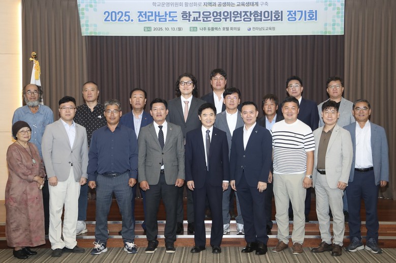 [전남 세계타임즈=우덕현 기자] 전라남도교육청(교육감 김대중)은 10월 13일(월) 나주 듀플렉스 호텔에서 도내 22개 지역 학교운영위원장협의회 대표 위원장들이 참석한 가운데 ‘2025. 전라남도 학교운영위원장협의회 정기회’를 열었다.