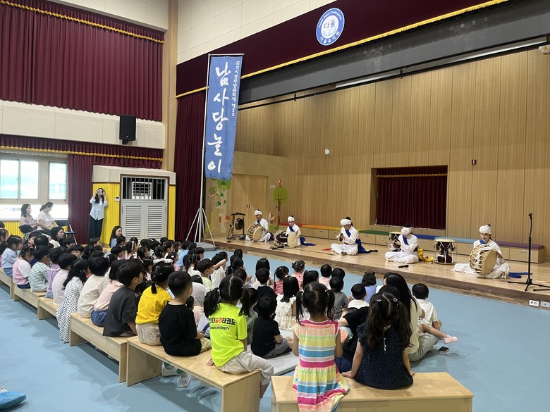 [파주시 세계타임즈=송민수 기자] 다율유치원(원장 박경숙)은 2025년 7월 1일(화)에 유치원 학부모회 주관으로 유아들의 전통문화에 대한 이해를 높이고 예술적 감성을 함양하기 위한 공연 체험 활동 ‘천지개벽의 남사당놀이’를 본원 강당(3층)에서 운영하였다.