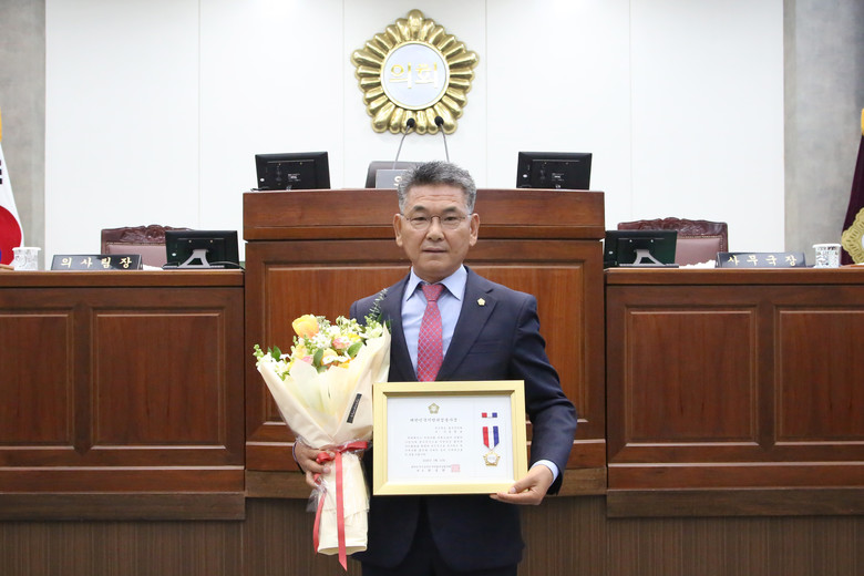 [칠곡군 세계타임즈=한윤석 기자] 칠곡군의회 심청보 의장이 대한민국 시군자치구의회 의장협의회에서 선정한 ‘대한민국 지방의정봉사상’을 수상했다.