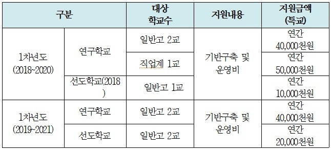 또한 2022년 이전 시행하게 될 고교학점제의 도입 기반 조성을 위해 다음과 같은 사업을 운영합니다.