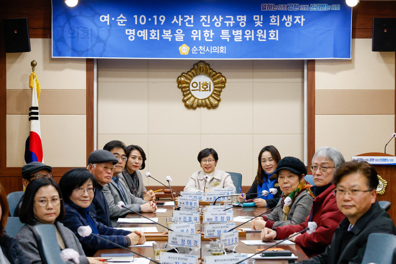 [순천시 세계타임즈=우덕현 기자] 순천시의회(의장 정병회) 여순 10·19사건 진상규명 및 희생자 명예회복을 위한 특별위원회(이하 여순사건 특별위원회)는 지난 4일 여순사건 사업현황 공유를 위한 회의를 개최했다.