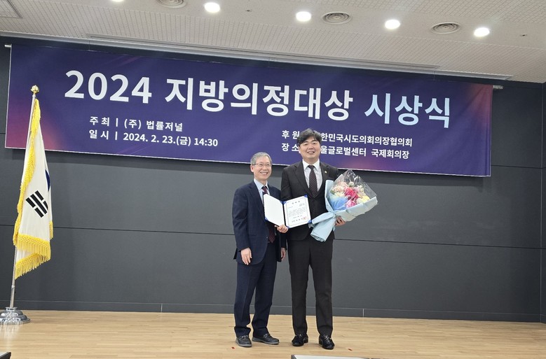 2024 지방의정대상은 대한민국시도의회의장협의회가 후원하고 ㈜법률저널이 주최하는 상으로 상임위원회 활동사항, 조례 제.개정, 토론회와 간담회를 통한 주민 소통 정도, 언론활동까지 2023년 한해의 의정활동 사항을 면밀히 분석하여 시상하는 상이다.