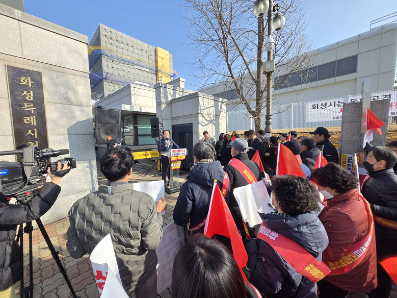[오산시 세계타임즈=송민수 기자] 이권재 오산시장은 17일 오후 12시, 화성시청에서 열린 집회에서 화성시의 초대형 물류센터 건립 계획을 규탄하고, 사업 전면 철회를 강력히 요구했다.