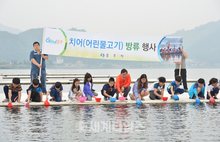 이날 탄금호 국제조정경기장에서 열린 방류행사에는 조길형 시장을 비롯해 노은초등학교 학생 및 교직원, 자율관리어업공동체 회원 등이 참여했다.