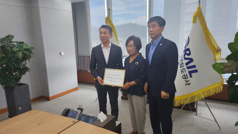 [부산 세계타임즈=이용우 기자] 부산광역시의회 김재운 의원(국민의힘, 부산진구3)은 23일(수) 14시 한국철도공사(KORAIL)을 방문해 한문희 사장과 면담을 갖고 범천동 철도차량정비단 부지에 중학교 설립을 위한 학교용지 확보를 요청했다.