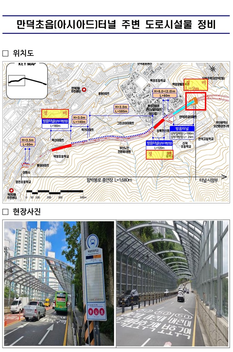 이번 사업은 지난 2023년 만덕3터널 개통 이후 지속적으로 제기되어 온 야간 소음과 투명 방음판 반사로 인한 빛 공해 문제를 근본적으로 개선하기 위한 정비사업이다. 실제로 개통 이후 소음 측정 결과, 총 10개 측정 지점 중 6개 지점에서 야간 소음 기준(55dB)을 초과하는 것으로 확인되면서, 주민 불편이 지속적으로 제기되어 왔다.